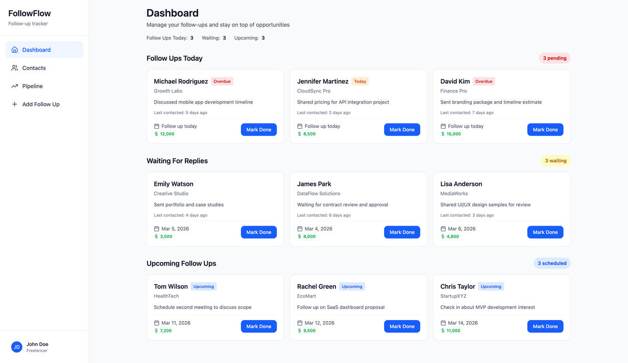 FollowFlow helps freelancers track conversations and remember exactly when to follow up with potential clients.